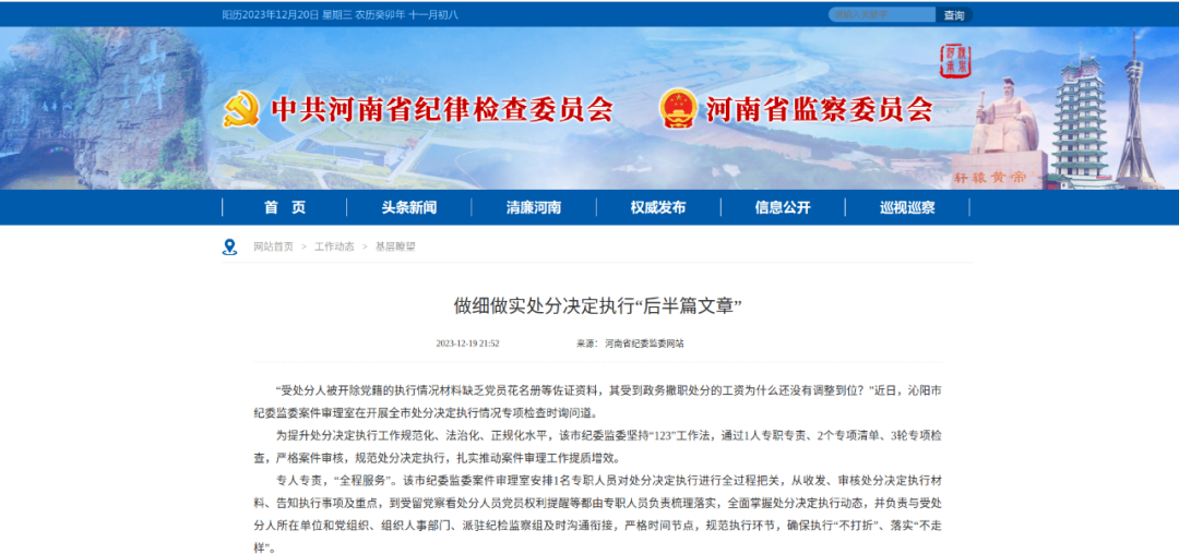 为提升处分决定执行工作规范化、法治化、正规化水平,该市纪委监委坚持“123”工作法,通过1人专职专责、2个专项清单、3轮专项检查,严格案件审核,规范处分决定执行,扎实推动案件审理工作提质增效。