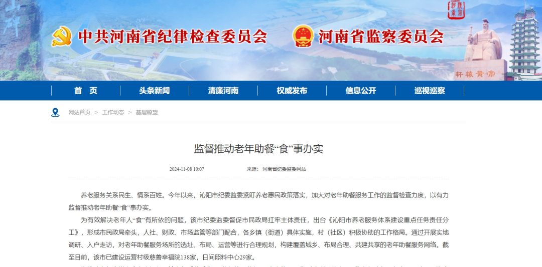 养老服务关系民生、情系百姓。今年以来,沁阳市纪委监委紧盯养老惠民政策落实,加大对老年助餐服务工作的监督检查力度,以有力监督推动老年助餐“食”事办实。