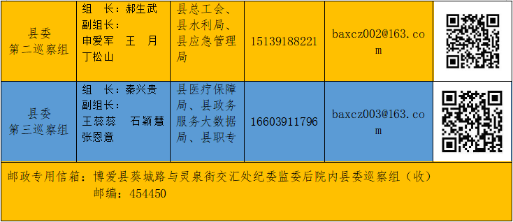 十三届博爱县委第五轮巡察进驻单位及举报方式一览表
