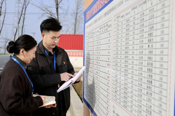 舞钢市委巡察机构紧盯惠民政策落地见效、基层治理提质增效、群众急难愁盼解决等重点任务,持续深化对村巡察工作。图为该市巡察干部在矿建街道张楼村实地核查特殊群体帮扶政策落实情况。(舞钢市纪委监委 毛永慧 摄)
