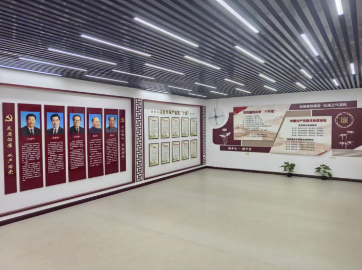 温县卫健系统廉洁教育中心以“廉以养德、文以化人”为主题,基地建筑群占地约421平方米,室内展陈面积达267平方米,通过声光电特效、图文展示及实物道具等多元形式,精心构建涵盖多个特色板块的廉洁教育空间,旨在为卫健系统党员干部和医务工作者打造一个沉浸式、全方位的廉洁教育平台,通过丰富多元的展示形式与内容,强化廉洁意识,培育高尚医德。