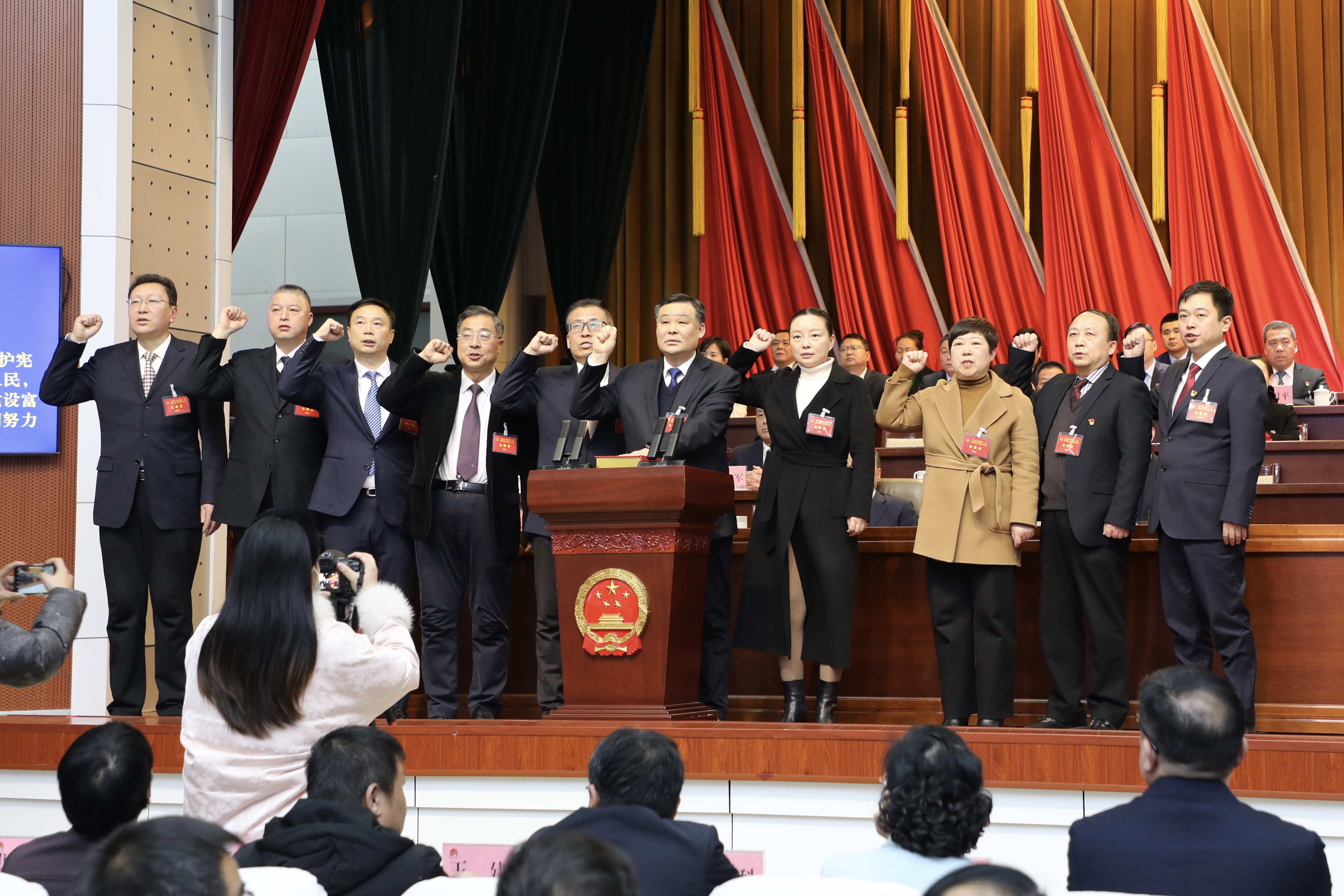 区委常委、区纪委书记、监委主任璩敬东(中)进行宪法宣誓