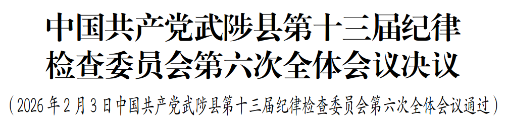 中国共产党武陟县第十三届纪律检查委员会第六次全体会议,于2026年2月3日在县委后四楼报告厅举行。县委副书记、县长张涛出席全会并讲话。