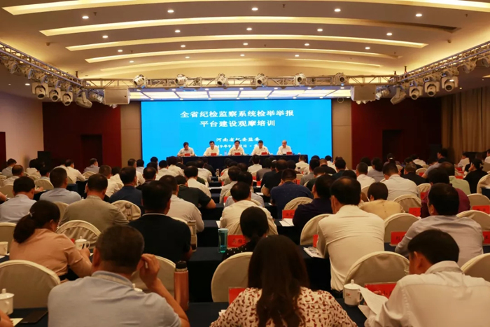 2019年9月29日,全省纪检监察系统检举举报平台建设观摩培训班在焦作市举办,传达贯彻中央纪委国家监委检举举报平台建设培训班精神,对全省纪检监察系统检举举报平台建设进行安排部署。省纪委副书记、省监委副主任阮金泉出席观摩培训并讲话,省纪委常委、省监委委员韩兆印主持会议。各省辖市纪委监委分管信访举报工作的领导、信访室和网络室负责人,部分县(市、区)纪委监委分管信访举报工作的领导,省纪委监委信访室、网络室工作人员共150余人参加观摩培训。市委常委、修武县委书记郭鹏,市委常委、市纪委书记、市监委主任牛书军陪同观摩。