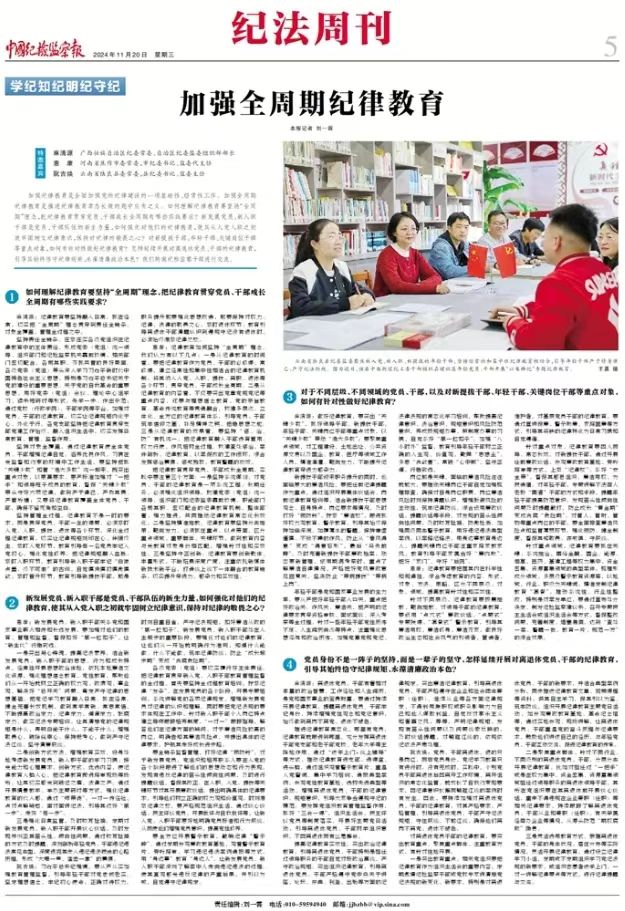 加强纪律教育是全面加强党的纪律建设的一项基础性、经常性工作。加强全周期纪律教育是推进纪律教育常态长效的题中应有之义。11月20日出版的《中国纪检监察报》纪法周刊专版以《加强全周期纪律教育》为题,刊发市委常委,市纪委书记、市监委代主任惠康同志的访谈文章,中央纪委国家监委网站同步转发。现将全文转载,供学习借鉴。
