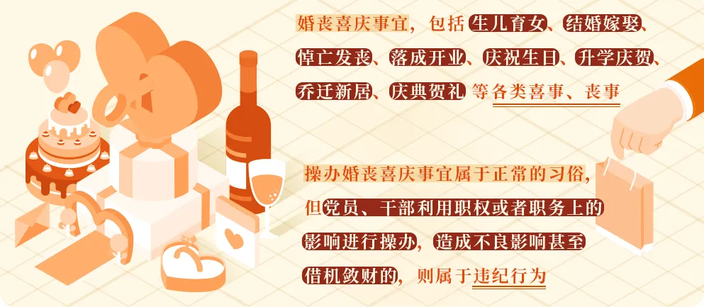 婚丧喜庆事宜本是日常生活中的人之常情,但有些党员利用职权或者职务上的影响大操大办婚丧喜庆事宜,造成了较为恶劣的影响,不但影响正常工作,甚至有的还成为借机敛财的手段。为严格制止这类行为,也是落实中央八项规定精神要求,作出本条规定。
