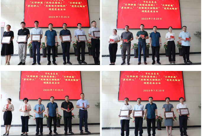 汲取榜样力量,砥砺奋进前行。7月25日,市纪委监委举行“文明部室(纪检监察组)”“文明家庭”“身边好人”“先锋党支部旗帜”“党员先锋岗”颁奖仪式。市纪委副书记、市监委副主任宁继学出席仪式并为获得荣誉的个人和集体颁奖,市纪委常委、市监委委员李振华主持仪式。市纪委监委机关各部室、廉政教育中心、市委巡察机构、各派驻机构负责人和获奖代表参加活动。