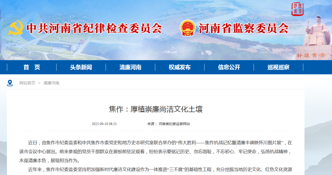 焦作拥有深厚的历史文化底蕴,古往今来,诸多贤达之士的廉洁故事在此流传。为传承这些宝贵的廉洁文化遗产,该市纪委监委深入挖掘当地历史文化中的廉洁元素,因地制宜、结合实际培育具有本土特色的廉洁文化内容。孟州市纪委监委精心打造“孟州市廉润初心教育基地”,深入挖掘韩愈廉洁文化内涵,拍摄专题片,邀请专家提炼韩愈家风家训并广泛传播,使韩愈廉洁文化成为当地廉洁教育的重要内容,吸引众多党员干部群众参观学习。武陟县纪委监委因地制宜打造治黄廉洁文化品牌,依托嘉应观治黄悠久历史,挖掘整理古今治黄人物廉洁典故,推动黄河文化与廉洁文化有机结合,让周边地区游客来景区参观打卡的同时,感知黄河文化中的廉洁力量。