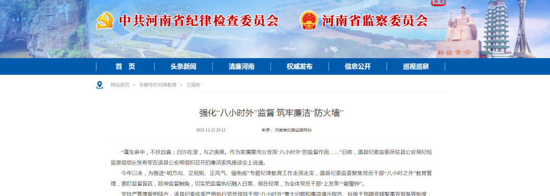 今年以来,为推进“明方向、立规矩、正风气、强免疫”专题纪律教育工作走深走实,温县纪委监委聚焦党员干部“八小时之外”教育管理,紧盯监督盲区,延伸监督触角,切实把监督执纪融入日常、做在经常,为全体党员干部“上发条”“敲警钟”。